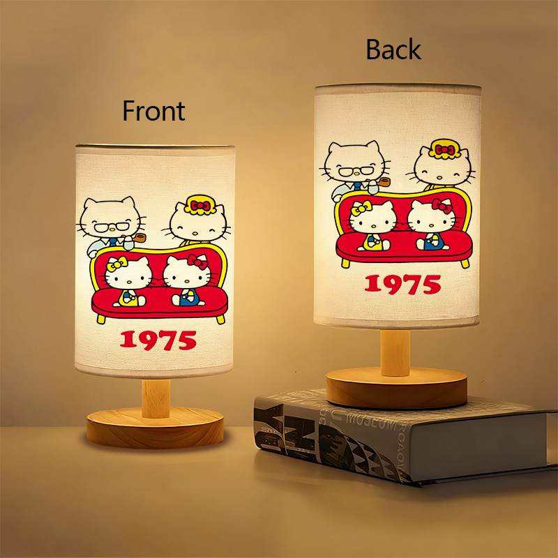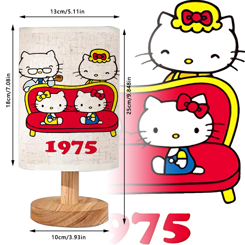 The 1975 Hello Kitty Family Scene Printed Linen Table Lamp is created for seasonal settings that favor warm lighting, thematic design, and structured materials. This lamp features a cylindrical printed shade and a balanced wood base, designed to remain upright and functional across various spaces.