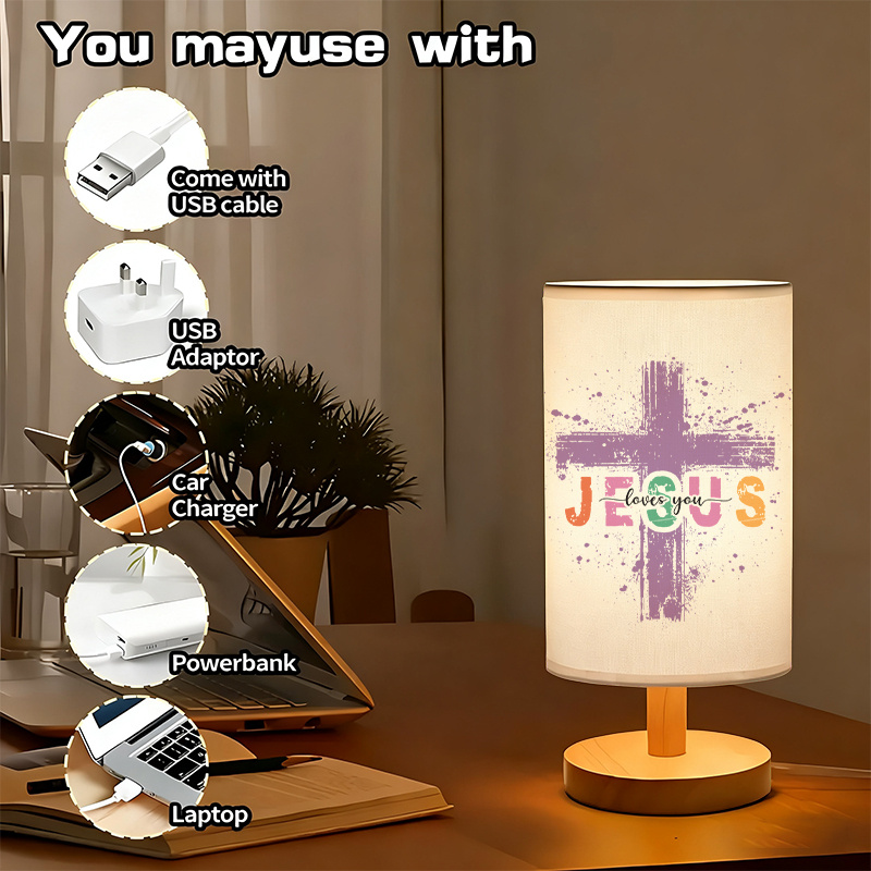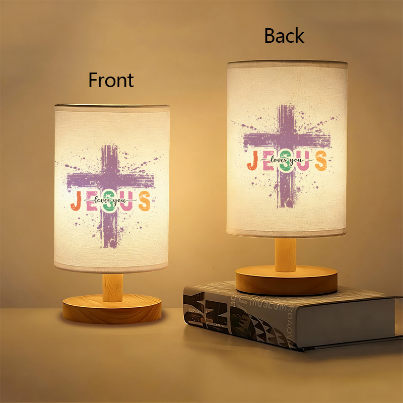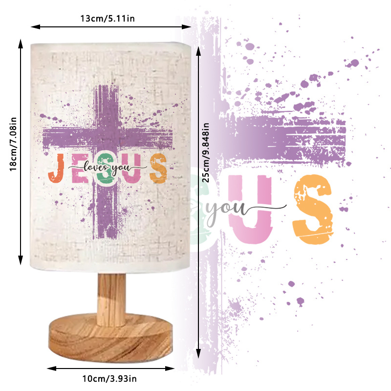 The Abstract Cross Art Linen Table Lamp combines artistic expression with practical lighting. Its linen-style shade creates a warm, inviting glow while showcasing a bold symbolic design that works well in modern interiors. The wooden base provides durability and visual balance, making the lamp both decorative and functional.