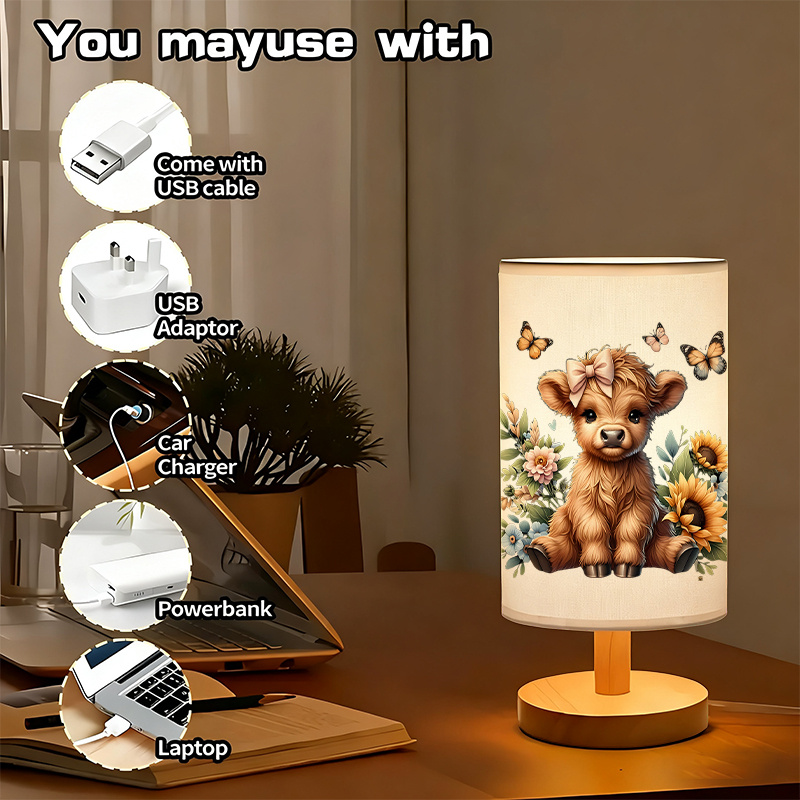 This animal print USB lamp combines decor and function in one piece. The printed linen shade adds a decorative focal point. The uplight glow provides warm ambient lighting for daily use. It suits bedrooms, living rooms, and desk spaces.