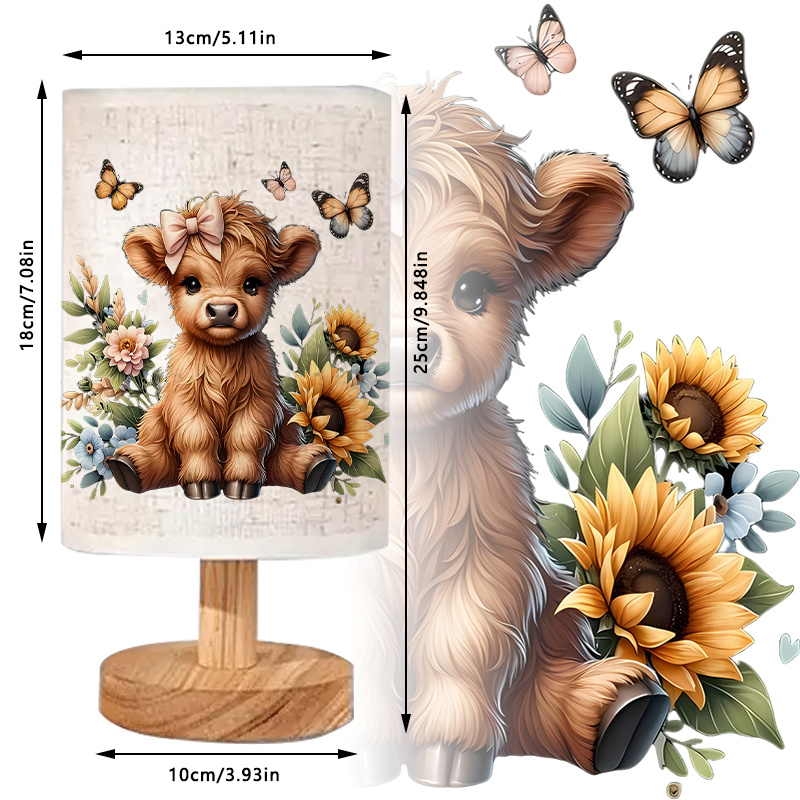 The shade shape is listed as other shapes. This gives it a singular profile compared to standard lamps. The animal themed print makes it suitable for themed decor spaces. It also works well in guest rooms and family spaces. The warm glow through the linen shade creates a cozy lighting effect. The print remains visible while the lamp is on. This makes it both functional and decorative.
