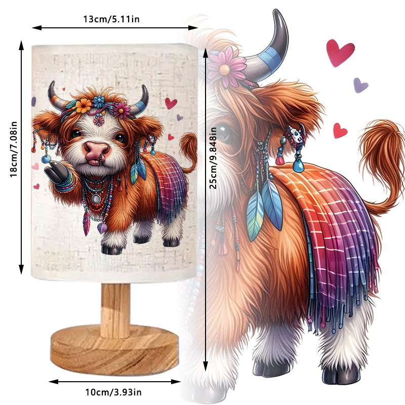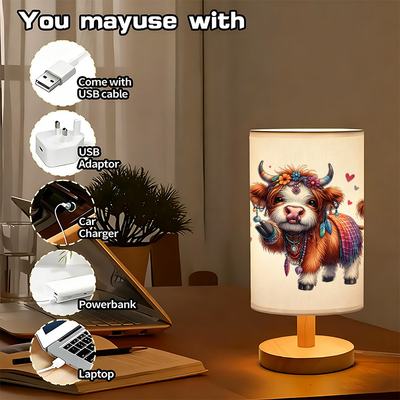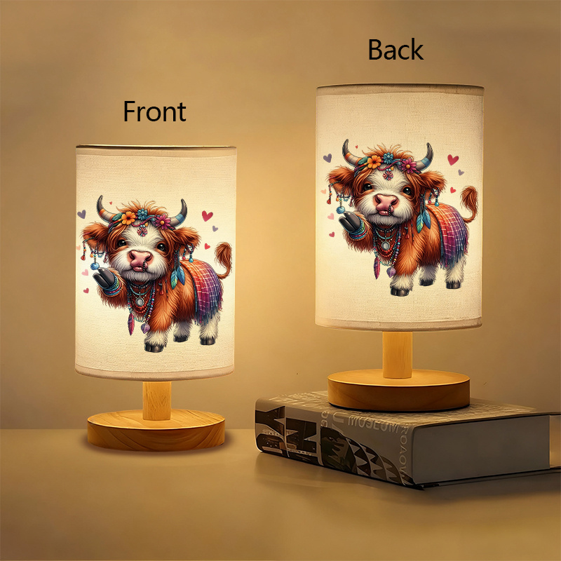 The Artistic Cow Pattern Linen Table Lamp is designed to combine artistic charm with functional lighting. Featuring a detailed and expressive illustrated pattern on a soft linen-style shade, this lamp adds character to any indoor space. The warm-toned light creates a welcoming atmosphere, while the wooden-style base enhances its modern and natural appearance. Whether placed on a bedside table, desk, or shelf, this lamp works as both a decorative element and a practical lighting solution.