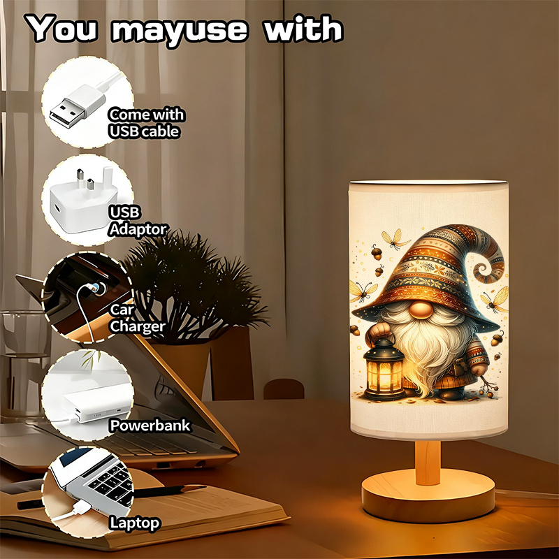 The Autumn Gnome Table Lamp integrates visual storytelling with functional indoor lighting. Its combination of seasonal imagery and straightforward structure makes it a fitting addition to spaces during autumn months. The USB-powered setup allows convenient integration in most interiors.