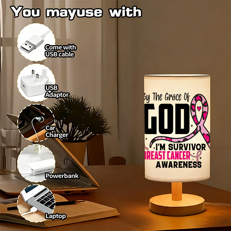 The Awareness Ribbon Table Lamp offers a blend of function and presentation. Its small form fits narrow spaces, while its printed quote and themed design provide a clear purpose.