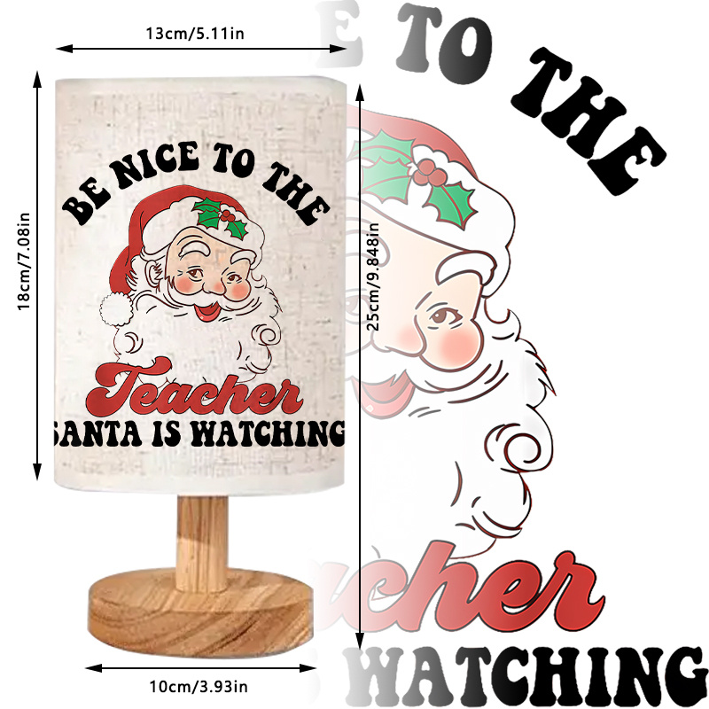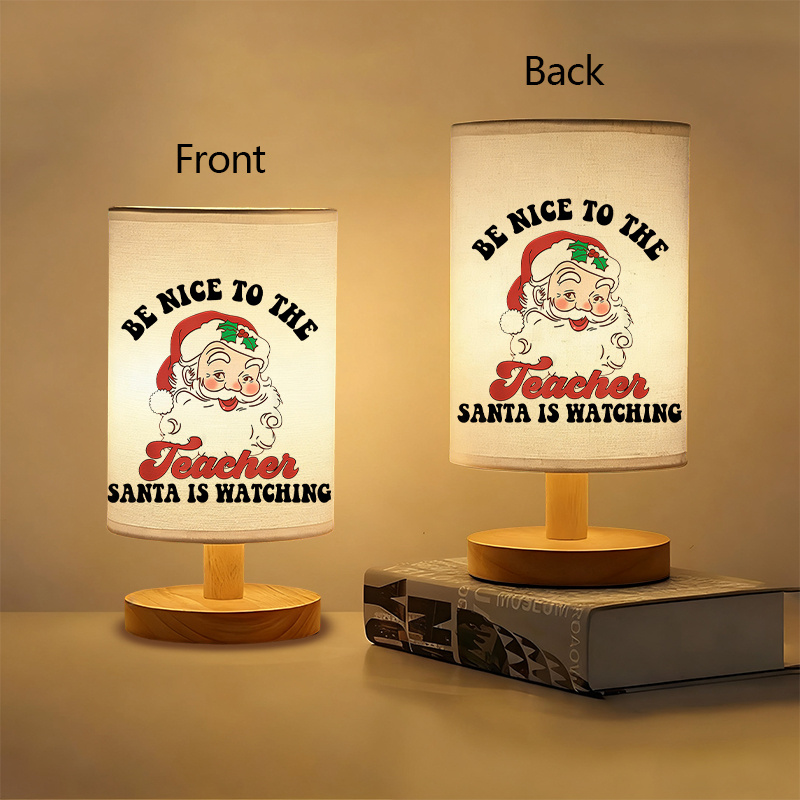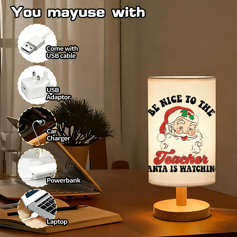 The Be Nice To The Teacher Printed Linen Table Lamp is a modern indoor tabletop lighting fixture designed for everyday room use. This version features a printed linen-style shade with a teacher-themed message, making it suitable for desks, side tables, shelves, and nightstands. The lamp operates through a cable-powered plug-in connection and does not require batteries, supporting consistent use in home and work environments. A push-button switch allows simple on and off control without complex settings.