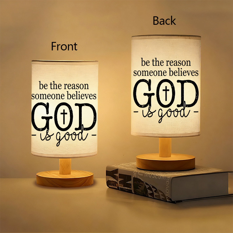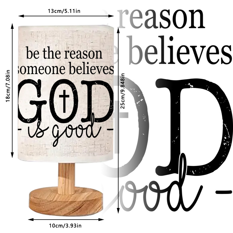 This lamp includes the phrase: Be the reason someone believes God is good. The words appear in clean typography, with a symbol integrated into the message. Designed without decorative clutter, the layout uses neutral tones to match various settings.