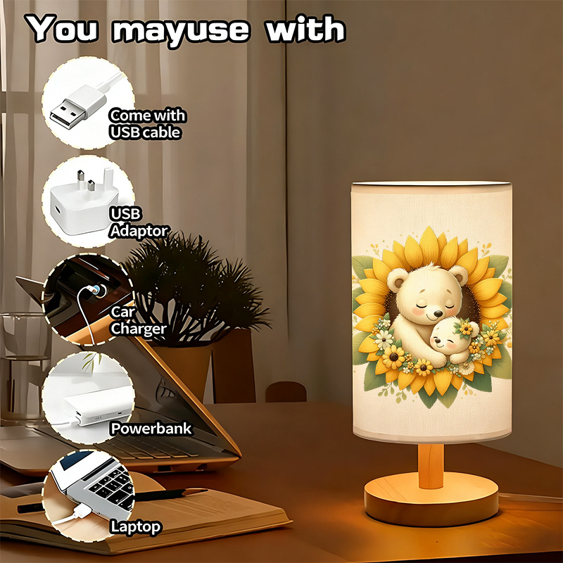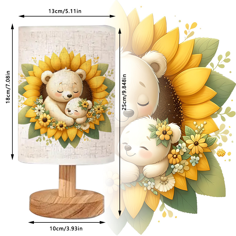 - USB linen table lamp with bear sunflower print shade design