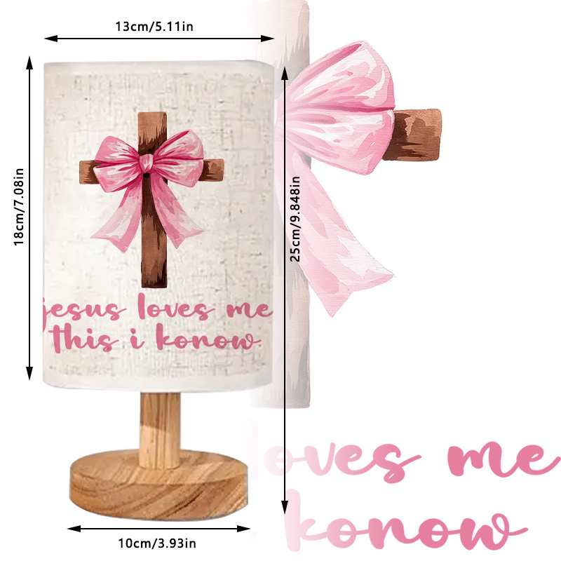 The Bow Cross Pattern Printed Linen Table Lamp is designed to bring gentle illumination and visual harmony to interior spaces. Featuring a soft linen shade printed with a cross and bow motif, this table lamp balances symbolic design with modern simplicity. The wooden base provides stability while complementing the fabric shade for a cohesive appearance. This lamp fits naturally into bedrooms, study areas, living spaces, and quiet corners where subtle lighting is preferred.