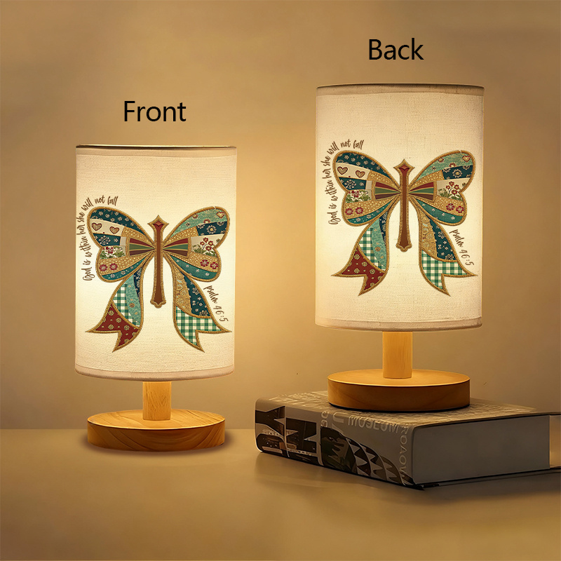 Bring a structured and theme-based accent to your personal space with the Bow Patchwork Inspirational Quote Printed Linen Table Lamp. Designed with printed scripture, a bow accent, and detailed patterning, this tabletop lamp supports those who appreciate quiet reflection or thoughtful study environments.