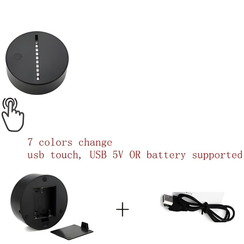 The base is designed to remain stable while maintaining a simple and modern appearance. Its neutral finish supports the acrylic panel without drawing attention away from the illuminated design. The touch-sensitive control is integrated into the base for ease of use. Multiple lighting colors allow visual variation throughout different times of day. The lamp maintains a polished appearance whether active or inactive.