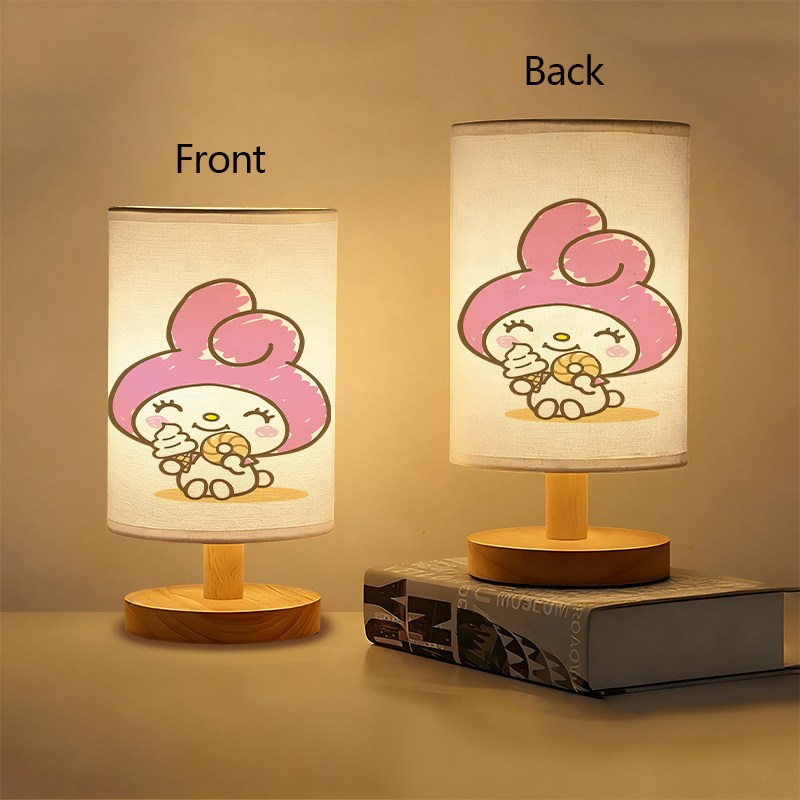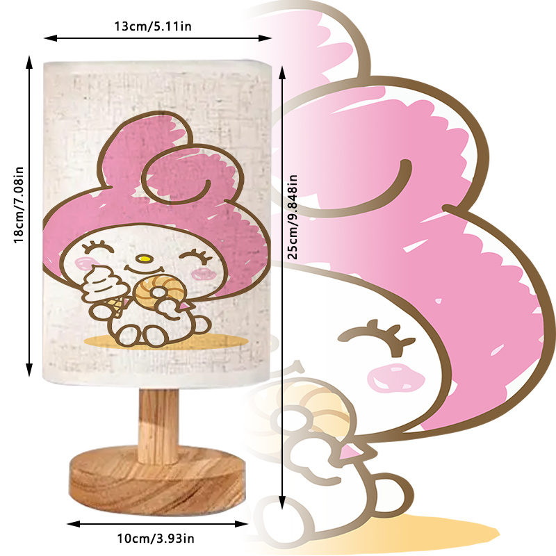 This Bunny Ice Cream Printed Table Lamp With Hood Character And Cozy Glow is structured with a printed hood element and themed design for low-light use in desk and shelf areas. Its compact form includes a printed shade and a stable wooden base that stands evenly on flat surfaces.