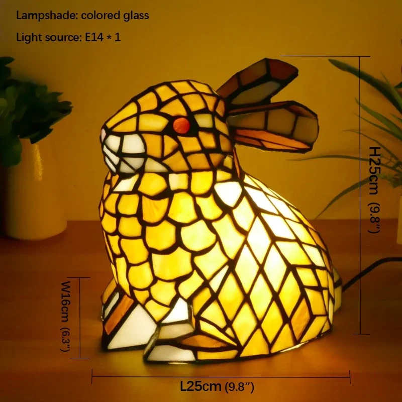 Bring structure and artistic texture to indoor environments with this Bunny Shaped Decorative Stained Glass Lamps For Home Decor. Designed with an animal motif, this piece merges glass craftsmanship with lighting function, making it suitable for various living environments, including casual settings, home lounges, short-stay rooms, and hospitality spaces.