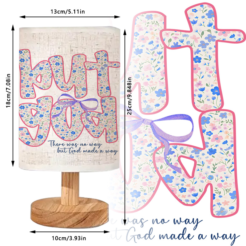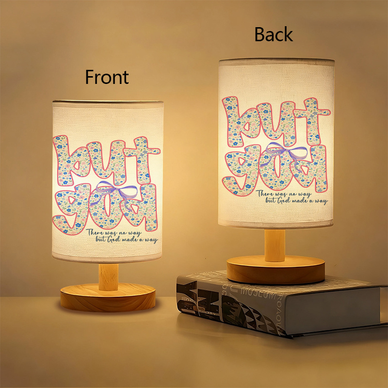 The But God Made A Way Printed Linen Table Lamp is a USB-powered linen table lamp with an inspiring message: “There was no way, but God made a way.” Featuring soft ambient light and a floral cross design, it provides both light and encouragement. Perfect for bedrooms, home offices, or living rooms, this lamp is a beautiful reminder of faith and divine guidance.