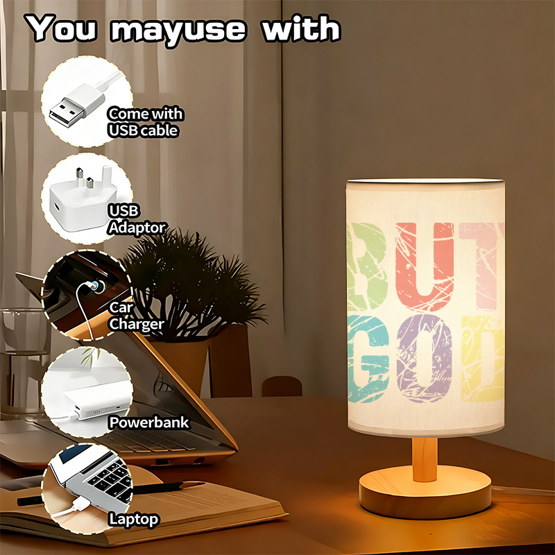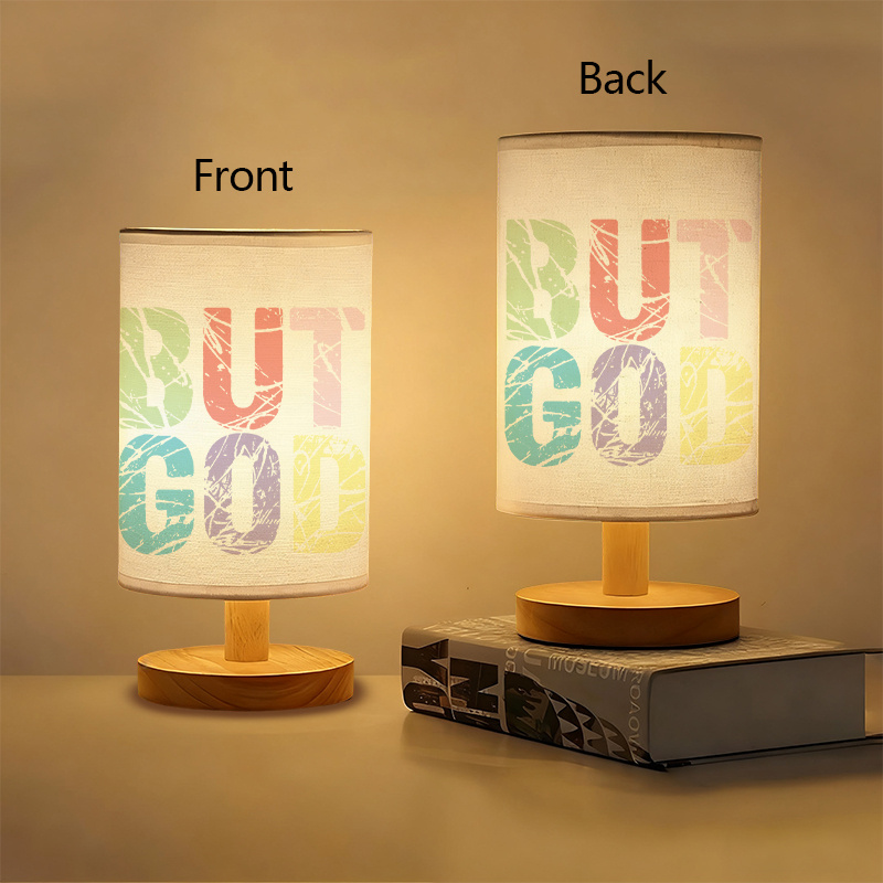 The But God Printed Linen Table Lamp With Typography is a practical lighting option for everyday indoor spaces, designed to sit neatly on a desk, side table, or nightstand. The linen-style shade helps soften the output from the included light source and directs illumination upward for a calm, evenly spread glow. This version features bold typography artwork on the shade, creating a clear focal detail that stands out without overpowering the rest of the room. With a simple button switch and push-button control, the lamp is straightforward to operate for daily use. Its modern styling fits well in contemporary interiors, including work-from-home setups, reading corners, and quiet seating areas where consistent light is preferred.