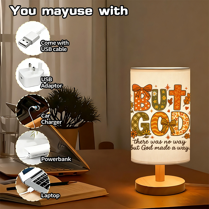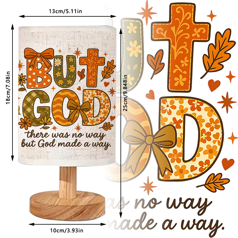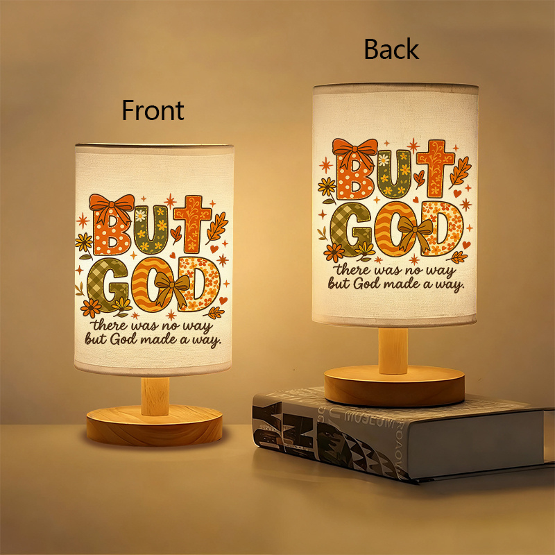 The But God There Was No Way Religious Text Printed Linen Table Lamp is created for seasonal settings that favor warm lighting, thematic design, and structured materials. This lamp features a cylindrical printed shade and a balanced wood base, designed to remain upright and functional across various spaces.
