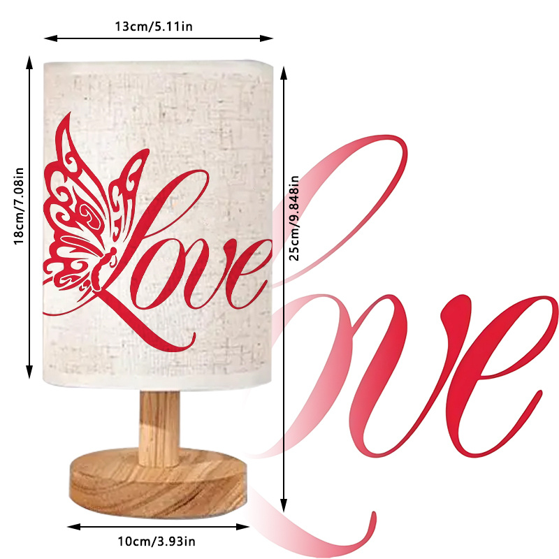 The shape is structured to stand without assistance. The cylindrical form allows for balanced light diffusion. The surface print features a butterfly motif paired with stylized typography. The form factor is moderate in scale, allowing it to blend into smaller rooms or corner spaces without obstructing other objects or visuals.