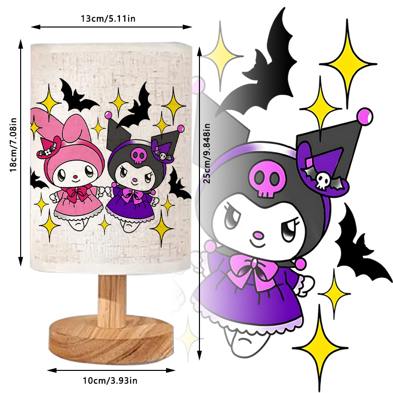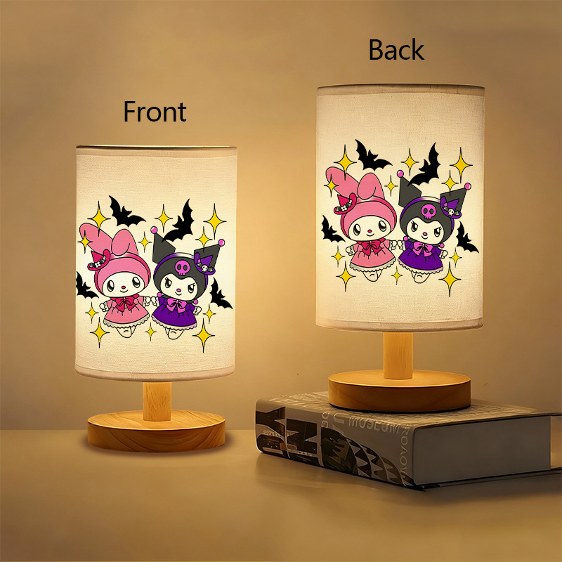The Cartoon Bunny Character Table Lamp With Halloween Bat Design offers a themed lighting option for interior spaces. Designed with an illustrated bunny character dressed in a seasonal costume, the lamp also displays surrounding bat and star artwork that reinforces its theme. The cylindrical shade carries this design on both front and back, giving the lamp a consistent visual appearance from all sides.
