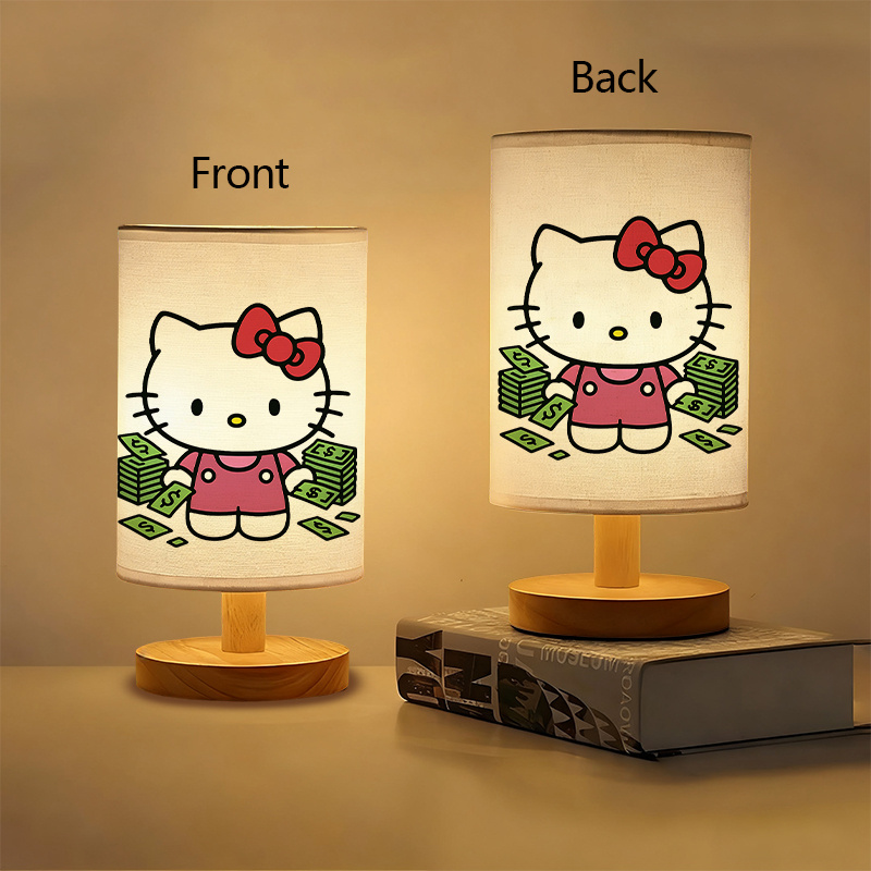 Featuring a cartoon cat illustration surrounded by stacked currency graphics, the lamp is well-suited for spaces where visual elements matter. Whether placed on a shelf, work table, or entryway furniture, it draws attention through a combination of form and graphic detail.