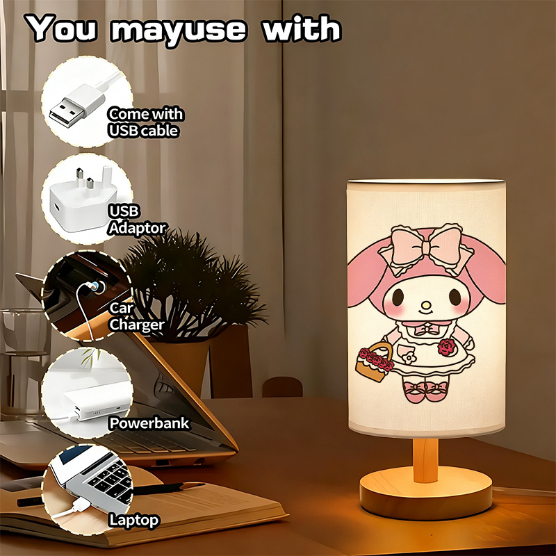 Add a look of sweetness to your space with this character-inspired linen table lamp. Designed for both décor and comfort, it features a gentle glow that enhances while maintaining visual appeal. The linen shade evenly diffuses light, making it suitable for nighttime use without harsh brightness. USB power provides flexibility, allowing connection to laptops, adapters, or power banks. Its compact design ensures it fits easily into small spaces, while the wooden base adds a warm, natural finish. Perfect for gifting or everyday décor.