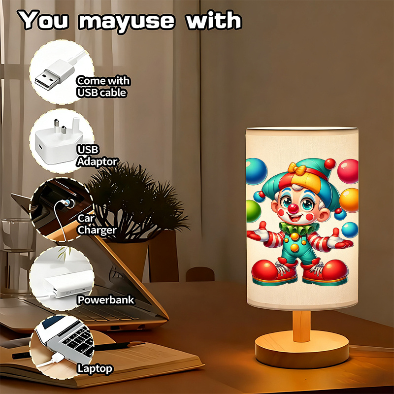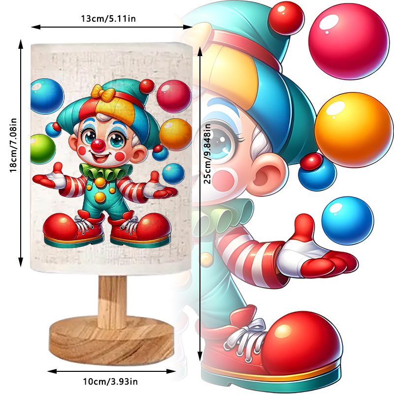 The Cartoon Clown Table Lamp provides a simple way to integrate gentle lighting into spaces that benefit from visual elements. The printed shade, themed around circus-style performance, adds an illustrative component to small spaces.