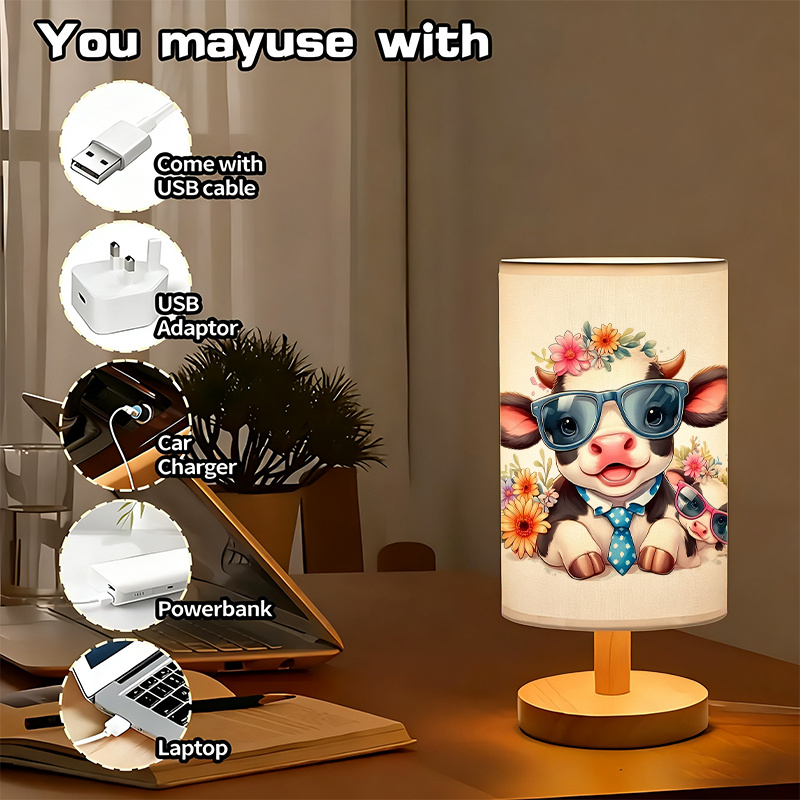 Why Choose This Cartoon Cow Graphic Print Linen Table Lamp