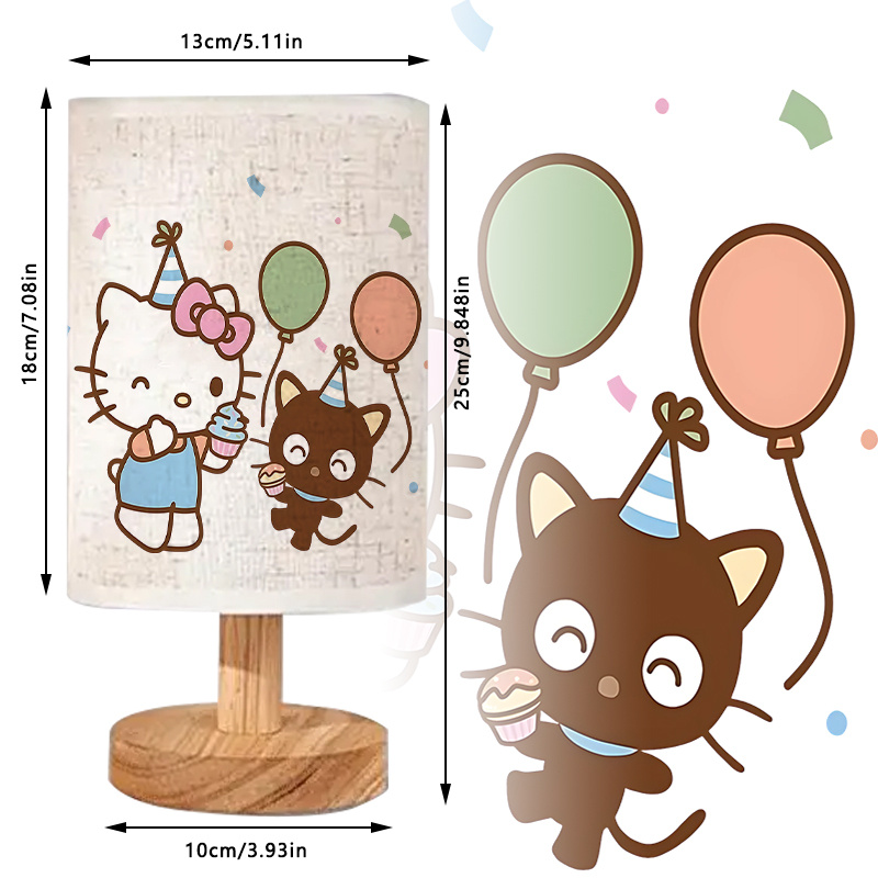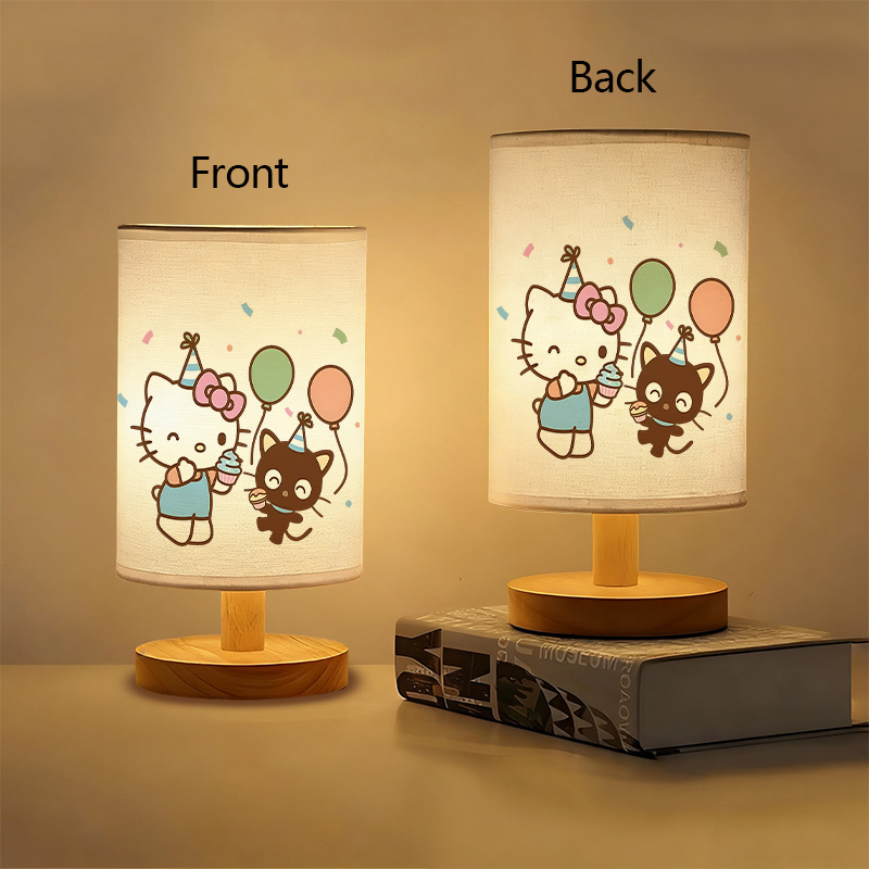 The lamp supports themed decoration and general desk lighting with a warm-toned light suitable for small zones. The printed shade helps connect the lamp to youthful environments or celebration-based setups.