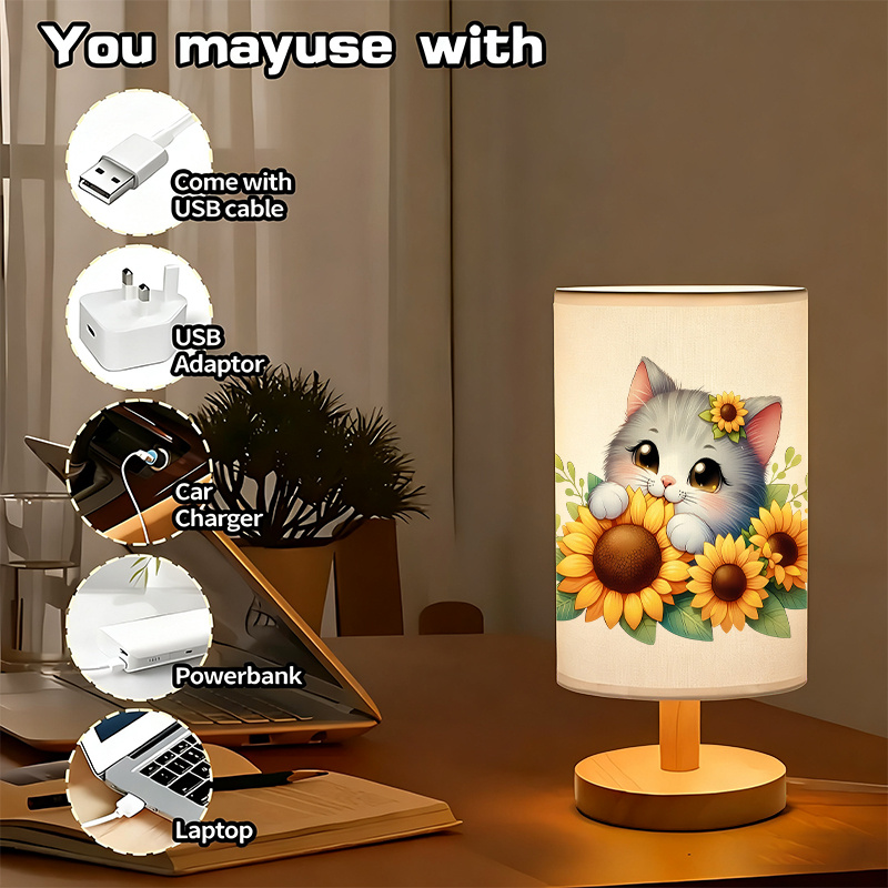 - Charming Design: The Sunflower Cat USB Table Lamp features a friendly cat with sunflower motifs, which are add a look of whimsy to any room.