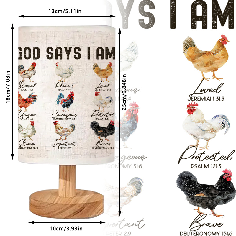 This chicken print USB lamp offers a blend of modern styling and farmhouse character. The printed linen shade adds rustic charm to many room setups. The uplight glow creates a warm and inviting atmosphere. USB-powered operation keeps setup simple. It works with common USB devices and adapters. This makes it easy to use on desks, shelves, and side tables. The push-button control keeps the operation fast and convenient.