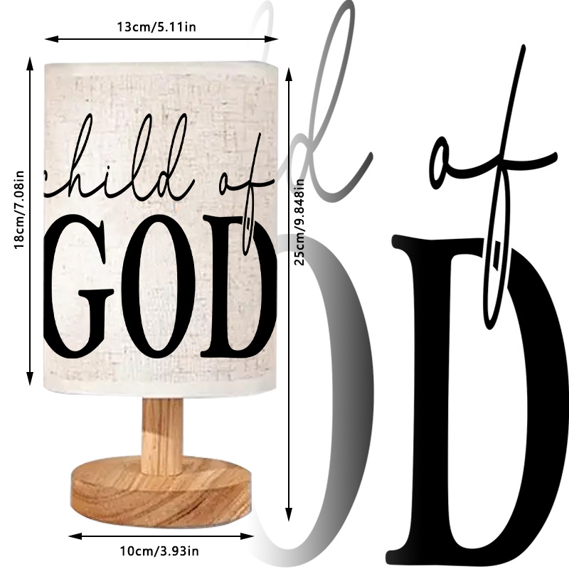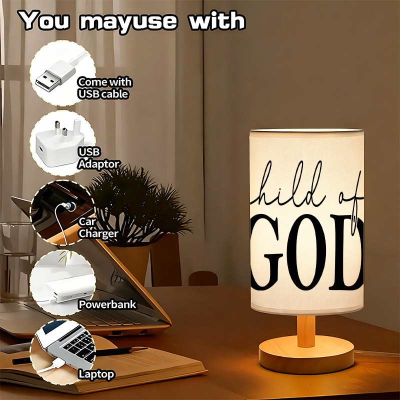 This Child Of Printed Linen Uplight Table Lamp offers modern décor styling and soft ambient lighting. The faith message table lamp shade adds a meaningful decorative touch. The uplight lighting method creates a gentle glow across the room. Push button control keeps operation quick and easy. USB powered setup supports placement in many spaces. Use it in bedrooms, living rooms, dorm rooms, and study areas for reading and room ambiance.