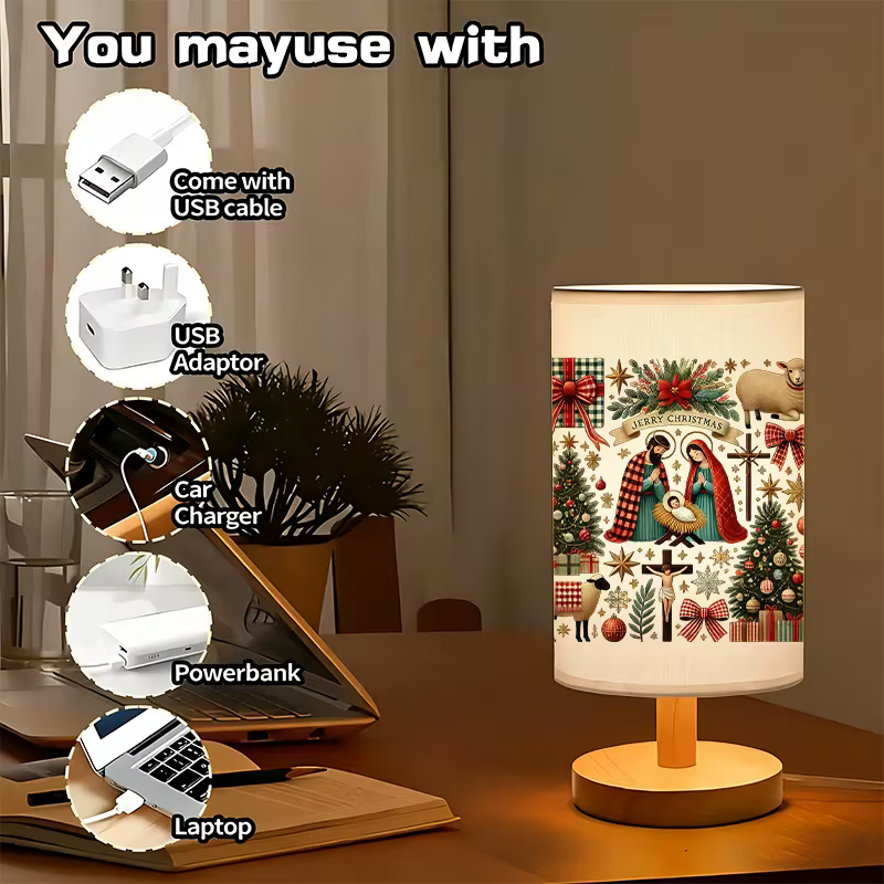The Christmas Themed Linen Table Lamp With Inspirational Message Design brings a look of elegance and inspiration to any space. Designed with a modern, minimalist style, it pairs effortlessly with any decor. The message “Created with a Purpose” provides a meaningful reminder of the intention behind each of us. With its different linen material and USB-powered functionality, this lamp is the perfect blend of form and function.