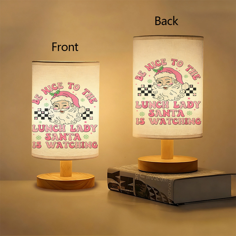 - Santa Design: Features a fun Santa Claus design with the message “Be Nice to the Lunch Lady, Santa is Watching,” adding humor and holiday cheer to your space.