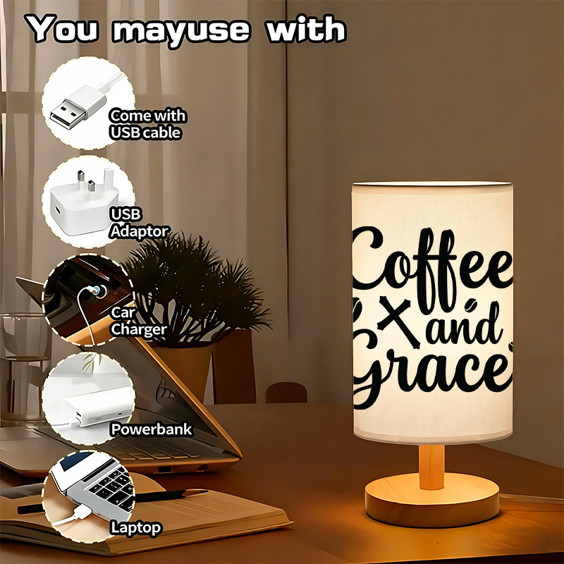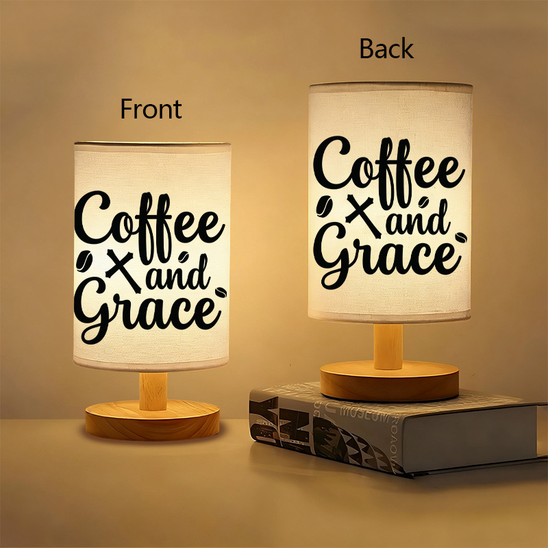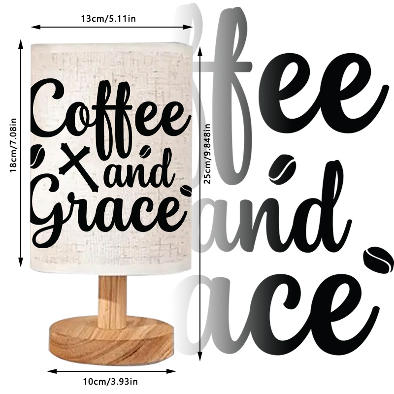 This Coffee And Grace Inspirational Quote Printed Table Lamp With Wooden Base combines a faith-based quote with a linen shade and a grounded base. The simple message reflects mindful living and fits into spaces that welcome calm surroundings. It serves as a source of ambient light, paired with quiet, focused text.