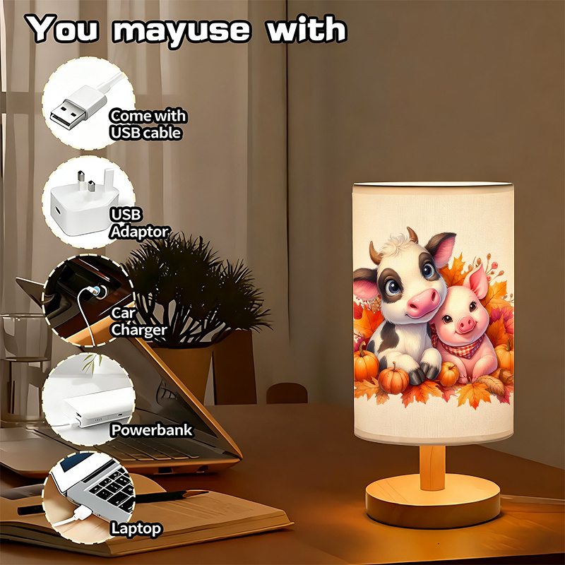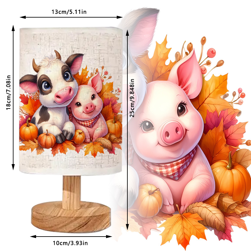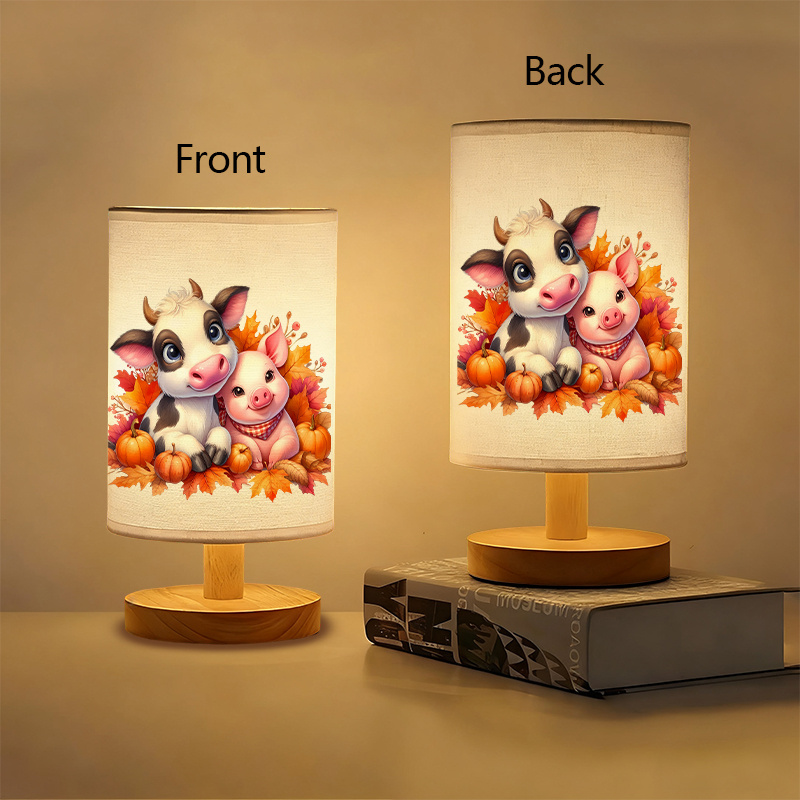 The Cow And Pig Printed Linen Table Lamp With Pumpkin Leaves Artwork provides a simple way to display seasonal themes using minimal effort. Featuring a printed lampshade with cow and pig illustrations, this item adds a rural concept to indoor spaces without needing complex fixtures or installation. Its use of pumpkins and leaves as visual elements supports seasonal transitions throughout the cooler months.