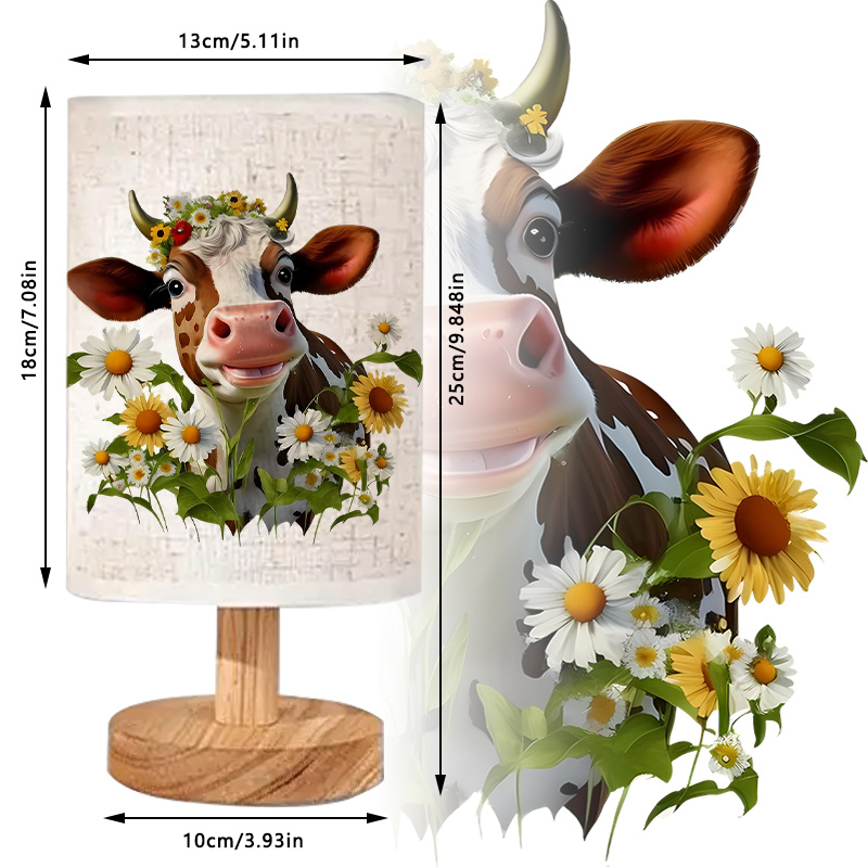 - Floral Cow Design: Featuring a smiling cow with a flower crown and surrounded by sunflowers, this lamp creates a joyful and uplifting atmosphere in any room.