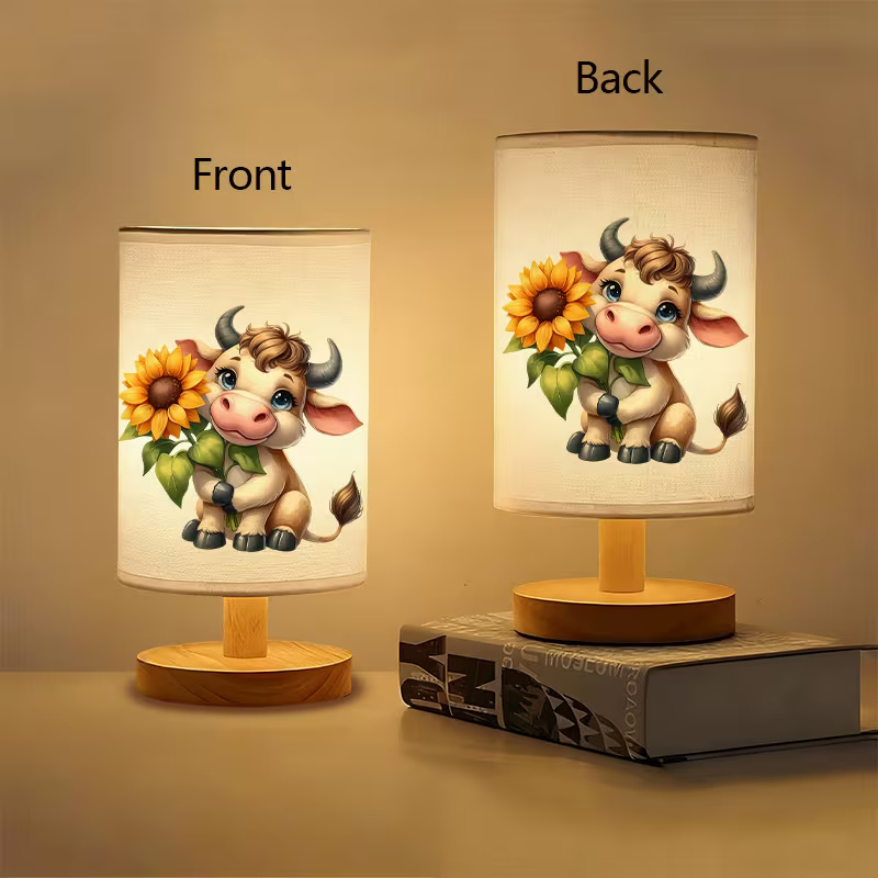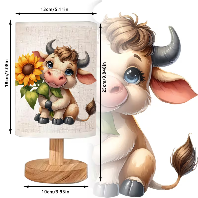 Add a fun and warm look to your home decor with the Sunflower Cow Table Lamp. This USB-powered linen lamp features a cow holding a sunflower, providing soft, ambient lighting for any room. Its compact design and eco-friendly materials make it a versatile and sustainable choice, ideal for bedrooms, offices, or as a thoughtful gift.