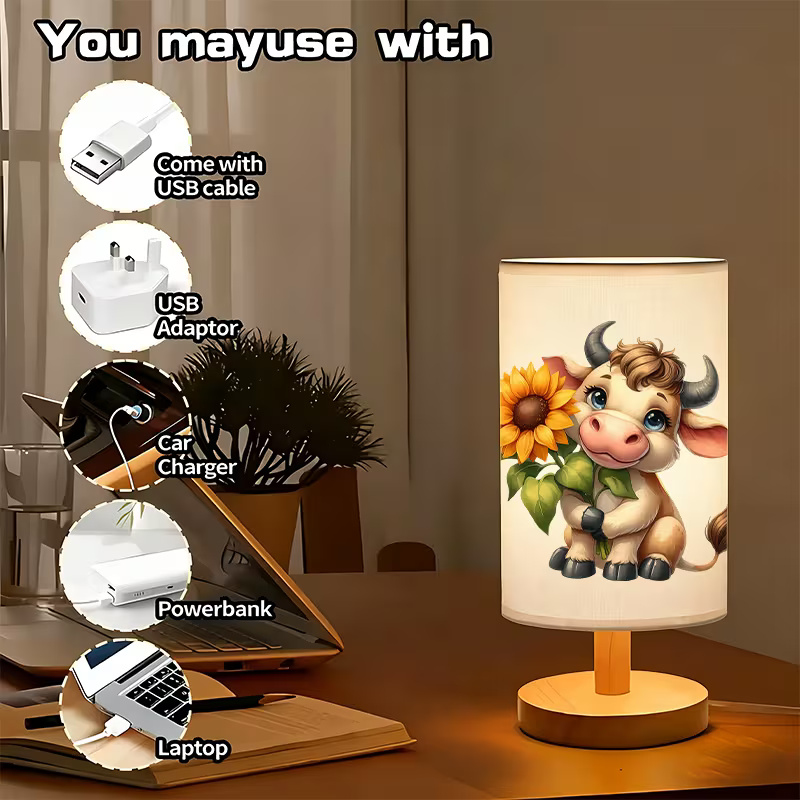 The Cow With Sunflower Themed Table Lamp For Home Decor is an fusion of whimsical art and modern functionality. Whether you need a gentle nightlight, a stylish addition to your decor, or a gift, this lamp delivers all that and more. Its energy-efficient USB power option makes it a convenient and environmentally friendly lighting choice, while its adorable cow and sunflower design will brighten up any room. Bring a look of nature and warmth to your space today with this lamp.