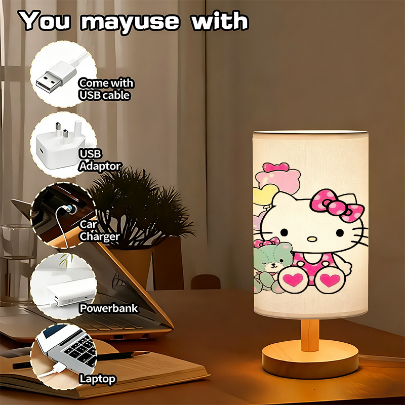 The Decorative Character Table Lamp with a cartoon-inspired shade and round wood base combines soft lighting and themed visuals. Designed for smaller interior zones, it supports USB power and offers portable placement options.