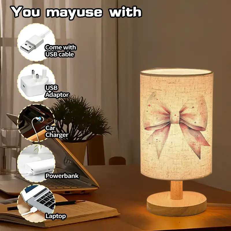 This Decorative Ribbon Bow Printed Table Lamp With Illustration Artwork provides a distinct visual accent for compact interiors. Designed with an illustrated ribbon bow on its outer shade, the lamp offers structure and shape while complementing personal or shared spaces. The combination of natural materials and illustrated themes creates a neutral display object suitable for several indoor setups.