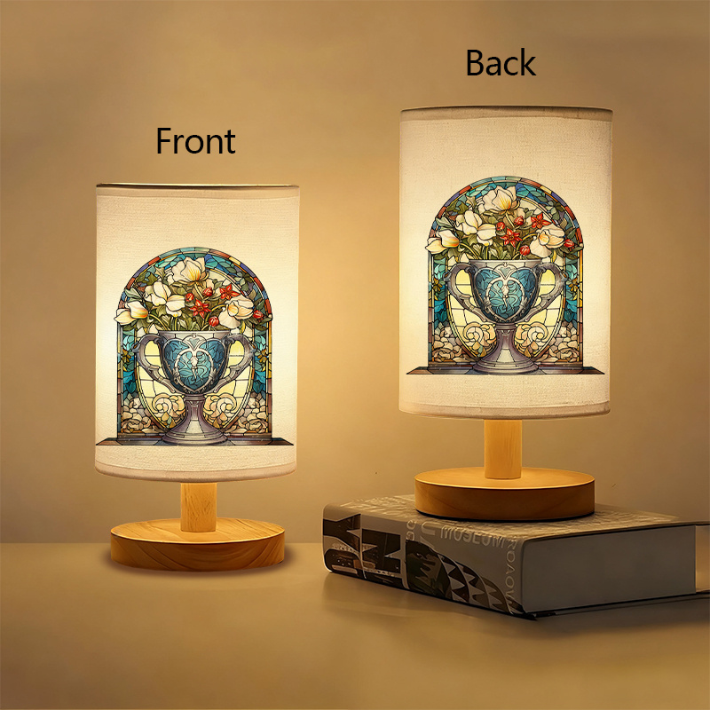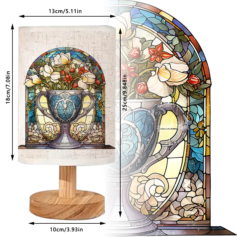 Bring structure and subtle design into your space with the Decorative Table Lamp With Floral Stained Glass Cup Artwork. Featuring a floral-style stained glass-inspired print on the shade, this tabletop lamp offers a simple lighting solution for interior spaces. With a measured form and consistent materials, it’s suitable for adding light in a room without drawing excess attention.