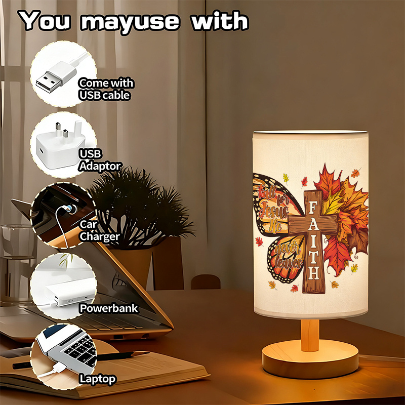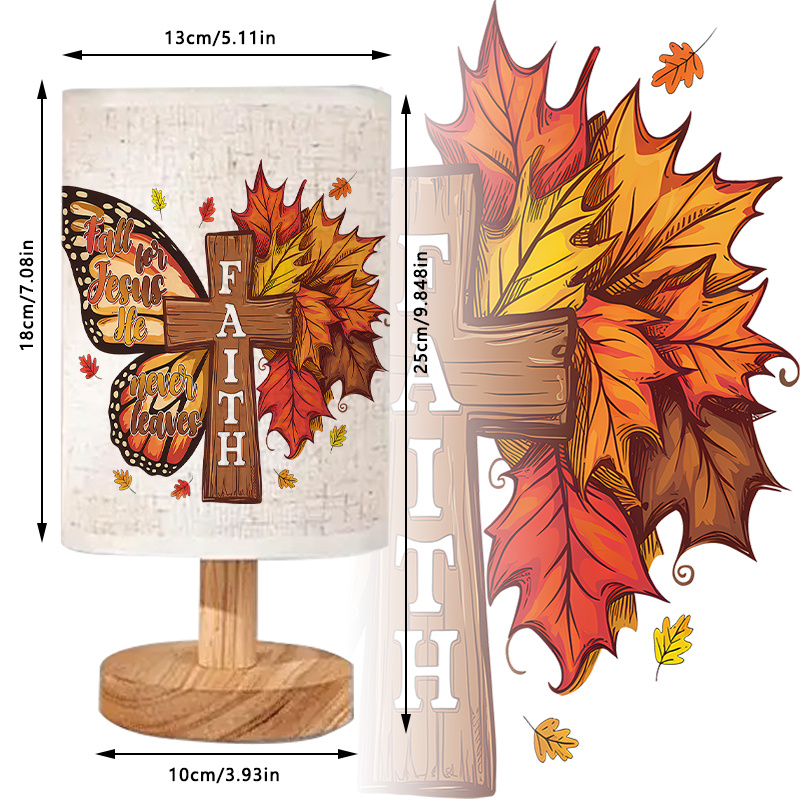 Bring a sense of reflection to your environment with this Faith Autumn Leaves Printed Table Lamp. Designed with a printed message and illustrated with seasonal elements, this piece offers an inspirational presence in both home and devotional settings. The design integrates visual calm and thematic meaning into a compact light source suitable for interior use.