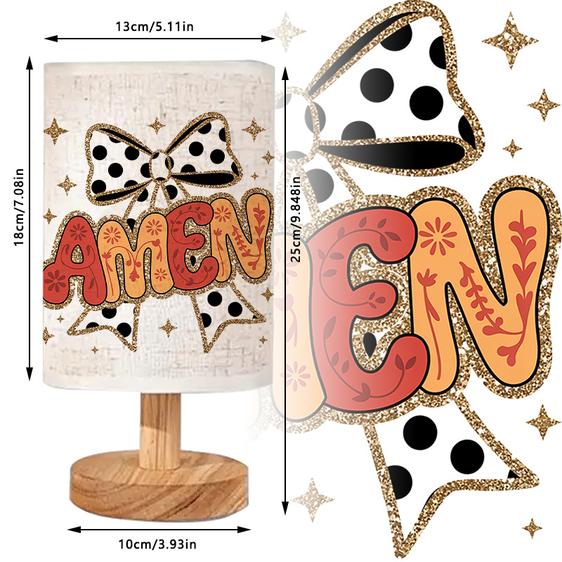 - Bold, Faith-Inspired Design: The word "Amen" is the central feature of the lamp, surrounded by stars and a polka dot bow. This design represents faith and positivity, encouraging those who see it to reflect on the significance of the word "Amen" and its spiritual meaning.
