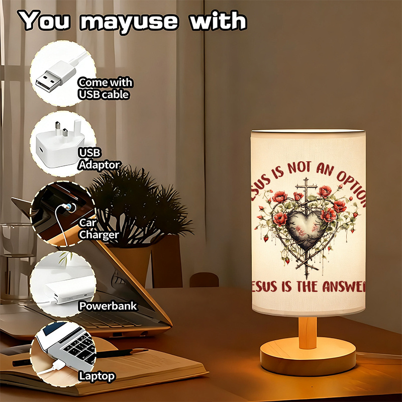 This USB linen table lamp combines meaningful decor with practical lighting. The Jesus quote and floral spirit print shade adds purpose to your space. The linen shade softens the light output for a gentle glow. The uplight lighting method supports calm ambient lighting for many rooms. USB power supports easy placement without batteries. It works well on desks and side tables. It also fits apartments and dorm rooms. The push button switch supports simple daily operation.