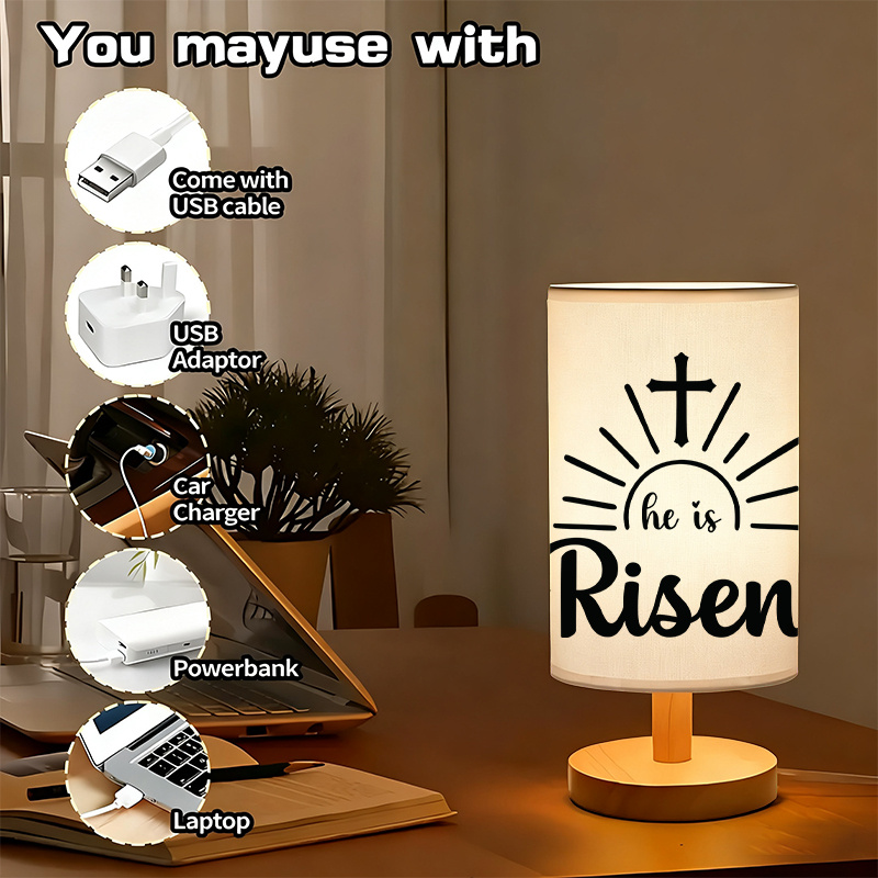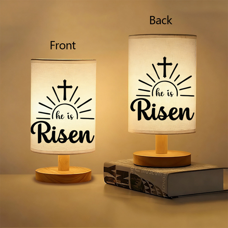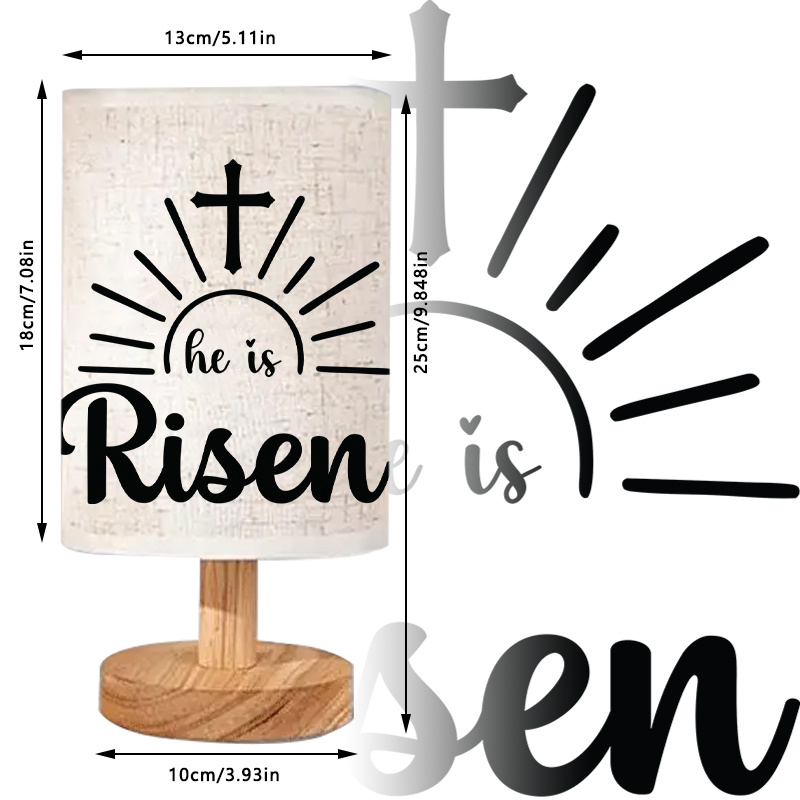 Lighting can influence the environment of any interior setting. The Faith Inspired Table Lamp With He Is Risen Statement offers a calm lighting presence through its cylindrical shade and simple upright layout. Highlighted by a soft statement text and symbol, this lamp delivers subtle indoor illumination for structured living areas, shelves, or focused zones.