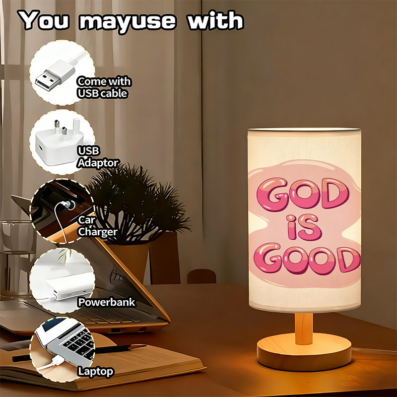 - Linen Table Lamp Base combines everyday indoor lighting with a faith-themed printed message shade