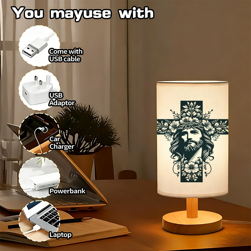 Spiritual decor serves a purpose beyond appearance. This Faith Portrait Inspirational Artwork Printed Table Lamp With Vintage Design delivers visual meaning and ambient illumination in one object. Its form includes a printed lampshade with a spiritual theme, featuring a symbolic figure and floral details. This lamp brings significance to the area where it stands.