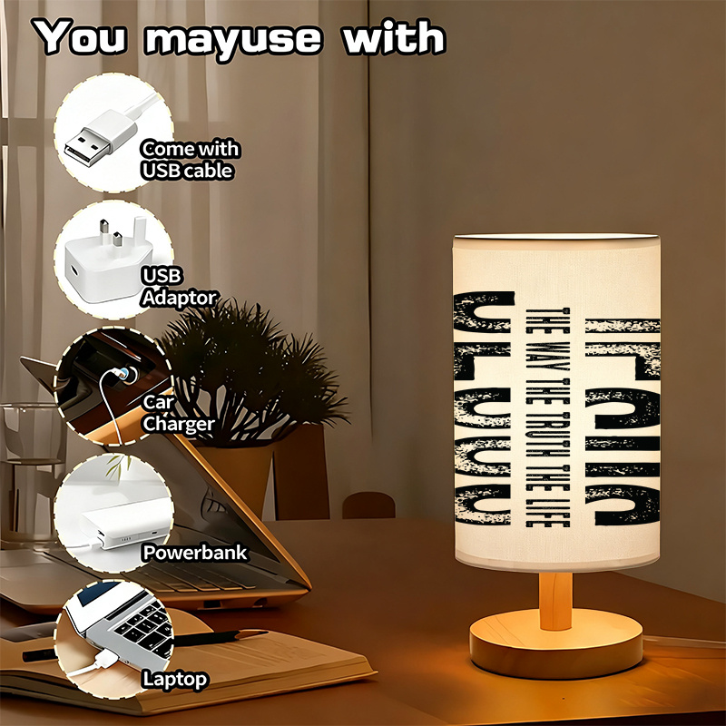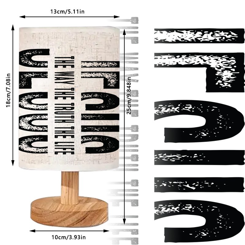 The Faith The Way The Truth The Life Message Printed Linen Lamp is created for seasonal settings that favor warm lighting, thematic design, and structured materials. This lamp features a cylindrical printed shade and a balanced wood base, designed to remain upright and functional across various spaces.