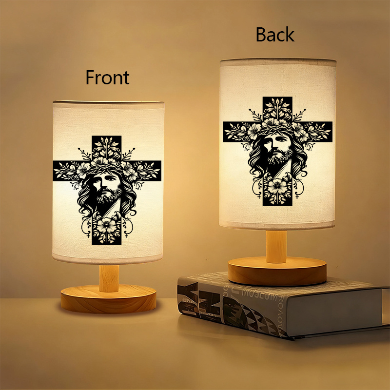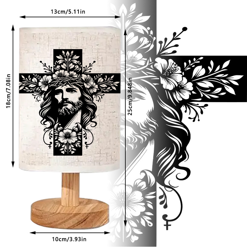 The Faith Themed USB Powered Linen Table Lamp is a compact table lamp designed for indoor use, featuring a linen fabric shade with a centered cross graphic design. The lamp uses a USB power connection, allowing flexible placement in various indoor environments without the need for fixed electrical outlets. Its cylindrical shade supports even light distribution while maintaining clarity of the printed design on the fabric surface.