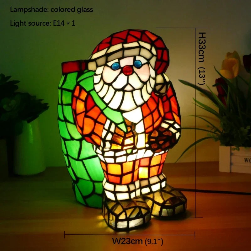 Bring structure and artistic texture to indoor environments with this Festive Santa Themed Stained Glass Lamps For Christmas Display. Designed with an animal motif, this piece merges glass craftsmanship with lighting function, making it suitable for various living environments, including casual settings, home lounges, short-stay rooms, and hospitality spaces.
