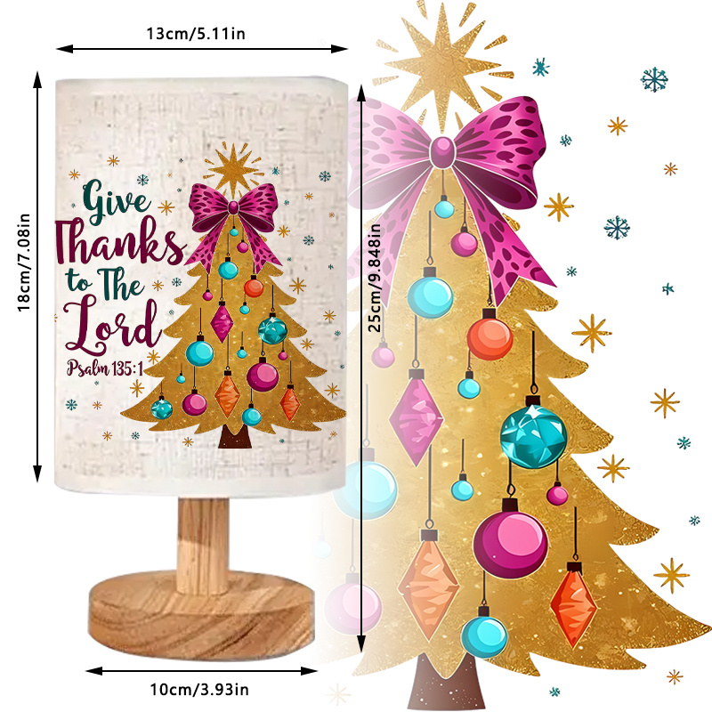 Why Choose This Festive Text Print Linen Table Lamp With Holiday Tree Graphic