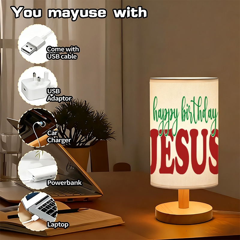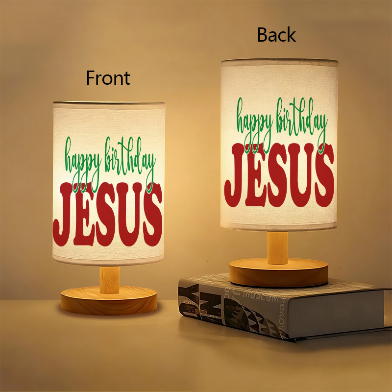 The Festive Themed Happy Birthday Printed Linen Table Lamp is a beautiful addition to any holiday decor. Perfect for spreading the Christmas spirit, it combines a modern design with a meaningful message. Whether you're lighting up your living room, bedroom, or office, this lamp offers both functionality and inspiration. It is powered by a USB cable, making it easy to place anywhere in your home or office. The vibrant green and red text make it a catching piece, while the soft linen shade casts a gentle, warm light perfect for any room. This lamp is an ideal gift for friends, family, or church members who want to keep Christ in their holiday celebrations. Plus, with its simple wooden base, it fits well into any decor style, making it a versatile piece that can be enjoyed long after Christmas.
