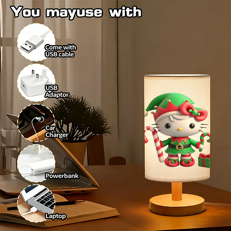 Add seasonal character and decorative lighting to your interior with this Festive Themed Hello Kitty Printed Linen Table Lamp. Designed for modern home settings, this lamp combines whimsical cartoon artwork with a clean fabric shade and a compact structure. Its USB-powered format allows convenient placement across different indoor areas, making it suitable for everyday lighting and seasonal decor.